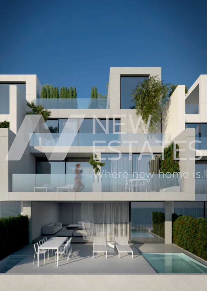 Всяка къща е изградена с южно изложение и се простира на 4 нива, предлагайки прекрасна панорамна гледка към морето. Включени са гараж за два автомобила и две външни паркоместа. Всеки дом разполага с асансьор и предлага 3 или 4 спални, 4 бани, просторна дневна с трапезария, модерна кухня и уютна веранда с басейн.