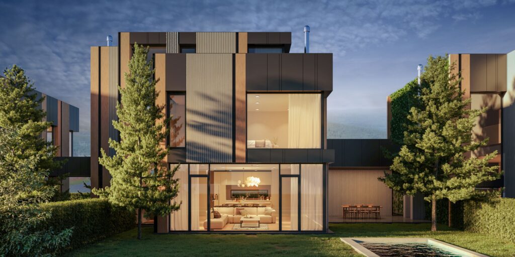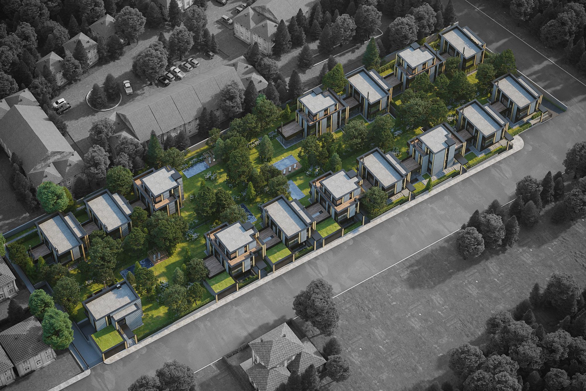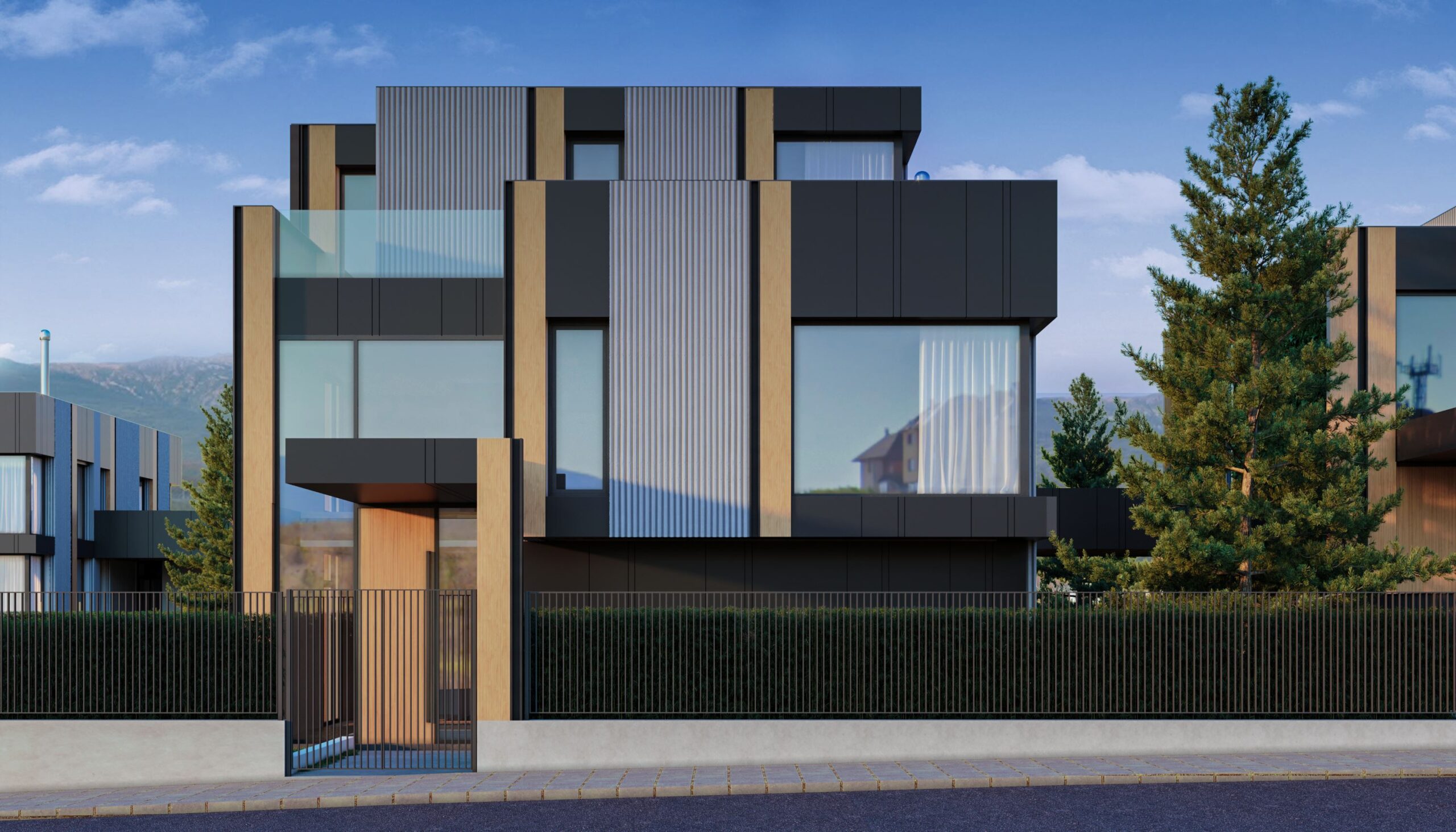 New Estates представя комплекс, разположен в непосредствена близост до София, в м-т Детски град. Гледката към Витоша и кристалният въздух, плюс свободата и комфорта, които осигурява природата, превръщат комплекса в най-добрия възможен избор. Има собствена пречиствателна станция за всяка къща, автоматизирано напояване за дворовете, газифициране, подово отопление, басейн и вътрешен асансьор, английски дворове в сутеренните площи, които дават усещане за простор пред огромните френски прозорци, входна врата висока 3.50 м., височината на приземен етаж е 313 см, дограми SHUKO с възможно най-големите закалени стъкла, които пропускат слънчева светлина целогодишно в имота. В непосредствена близост са Англо-американското училище, най-модерния на балканите София – бийч волей, басейн, хотел, ресторант, реновираната база на ЦСКА по футбол, гребната база Панчарево, както и най – голямата ветеринарна клиника Син Кръст.