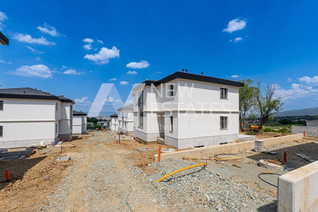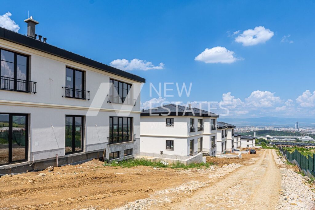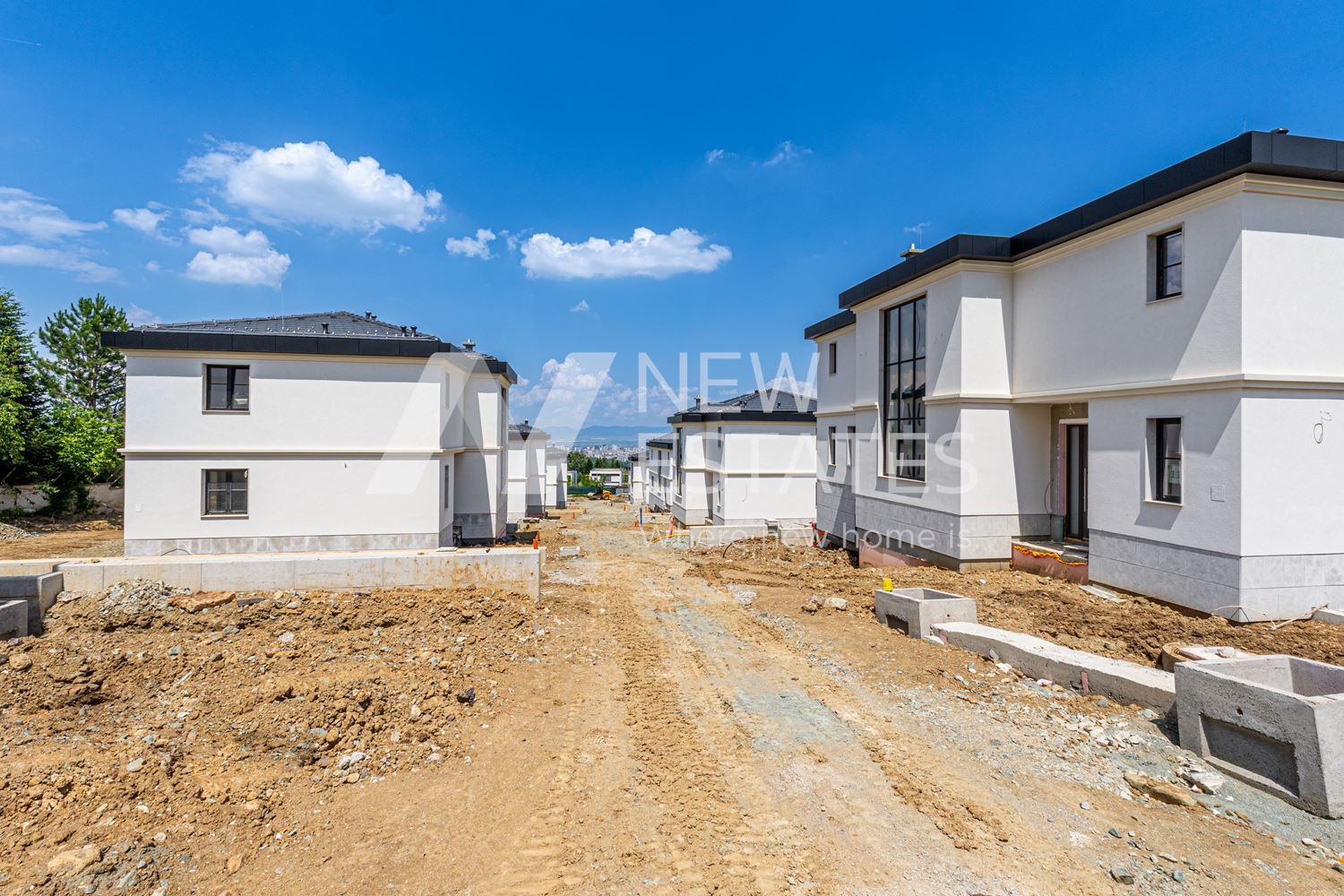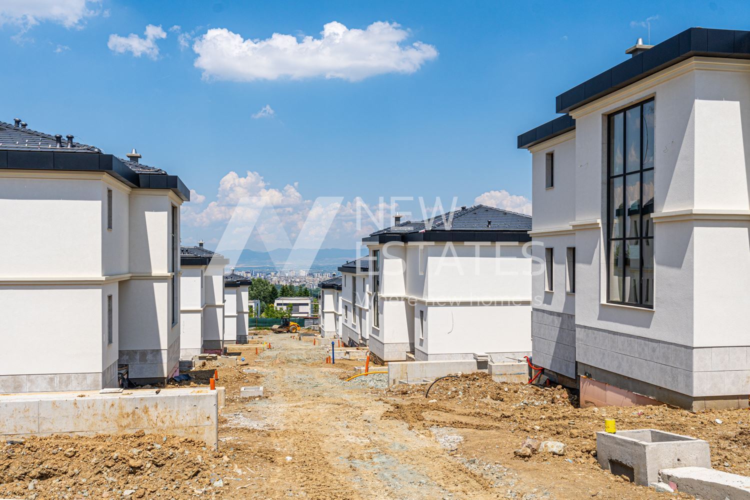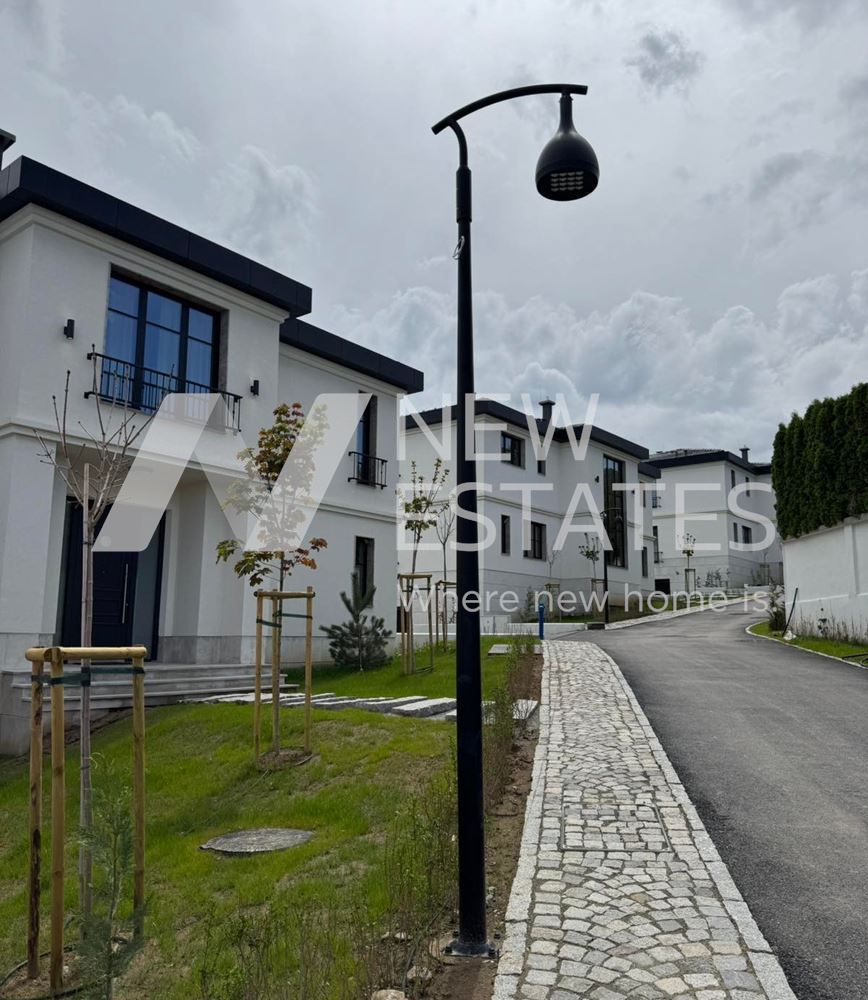 New Estates представя на Вашето внимание един затворен комплекс от най-висок клас, съчетаващ незаменимата комбинация от гледки към Витоша и София. Всяка една от 20-те еднофамилни къщи е ситуирана в самостоятелен парцел от 800 до 1 100 м2, разполага с обща използваема площ между 422 и 497 м2 и е проектирана с 3 до 5 спални (всяка със самостоятелна баня и WC), кабинет, фитнес, два гаража и три паркоместа.