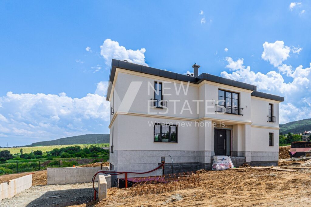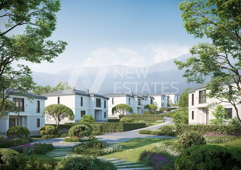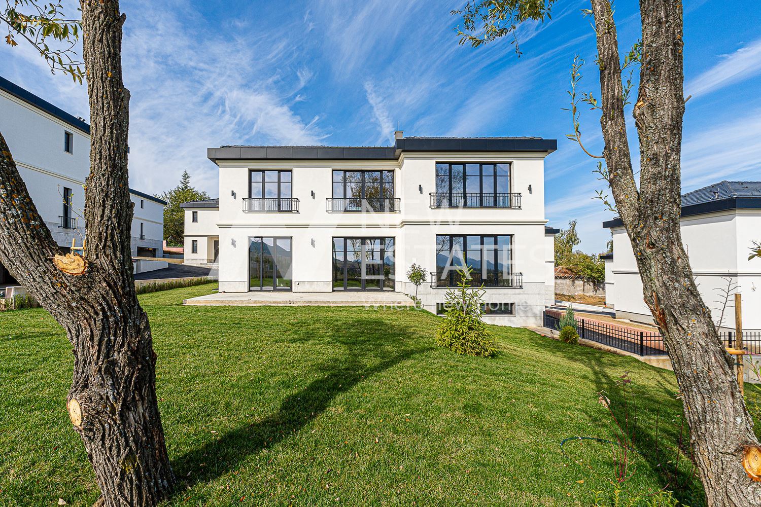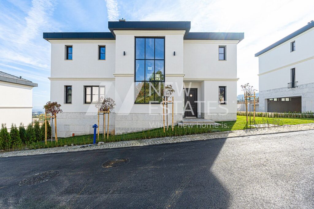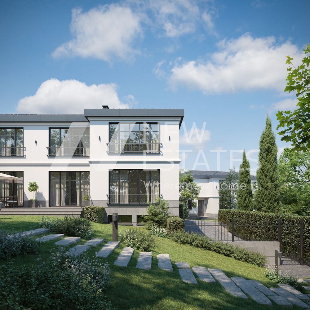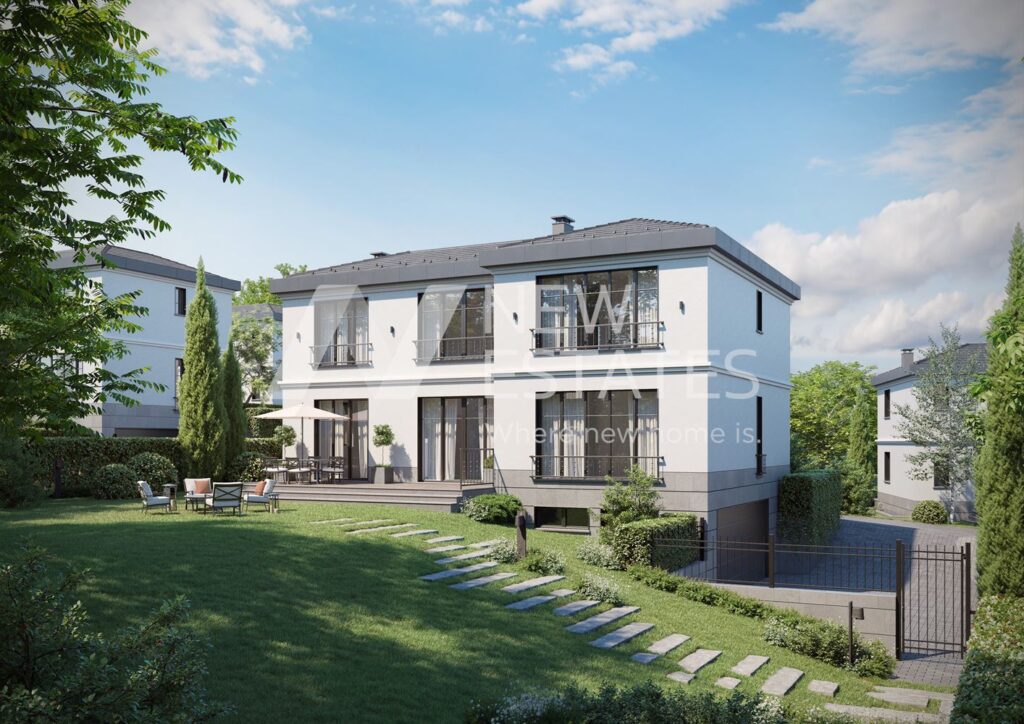 New Estates представя на Вашето внимание един затворен комплекс от най-висок клас, съчетаващ незаменимата комбинация от гледки към Витоша и София. Всяка една от 20-те еднофамилни къщи е ситуирана в самостоятелен парцел от 800 до 1 100 м2, разполага с обща използваема площ между 422 и 497 м2 и е проектирана с 3 до 5 спални (всяка със самостоятелна баня и WC), кабинет, фитнес, два гаража и три паркоместа.