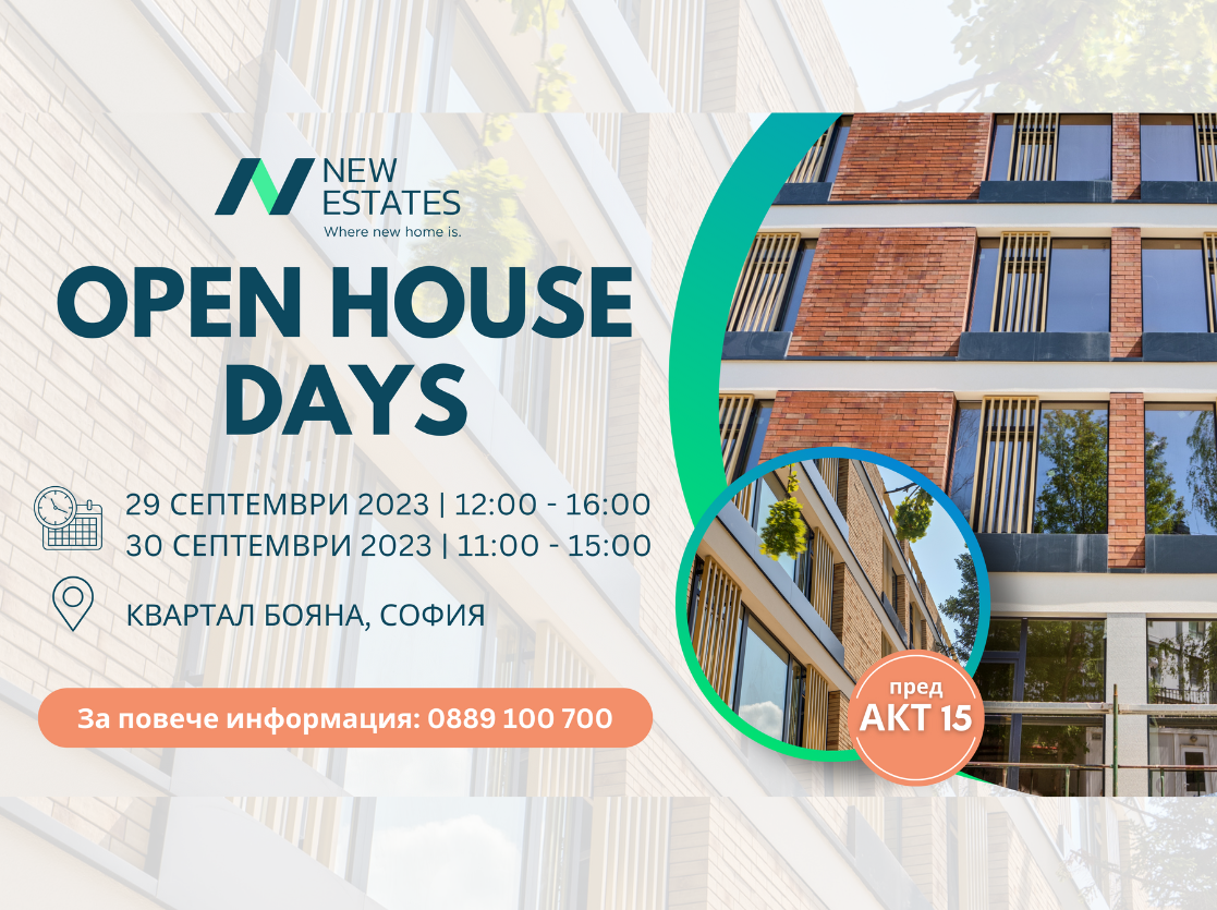 New Estates ви кани на Дни на отворените врати в нов жилищен комплекс в квартал Бояна с отличителни характеристики. Комплексът е прецизно планиран с 8 сгради, заобиколени от красиви междублокови пространства, детски площадки и много зеленина, за да осигури максимален комфорт и удобен живот на своите жители. Апартаментите в комплекса са проектирани с вградени технологии за Smart Home системи, които можете да управлявате директно от телефона си и разполагат с от 1 до 3 спални.